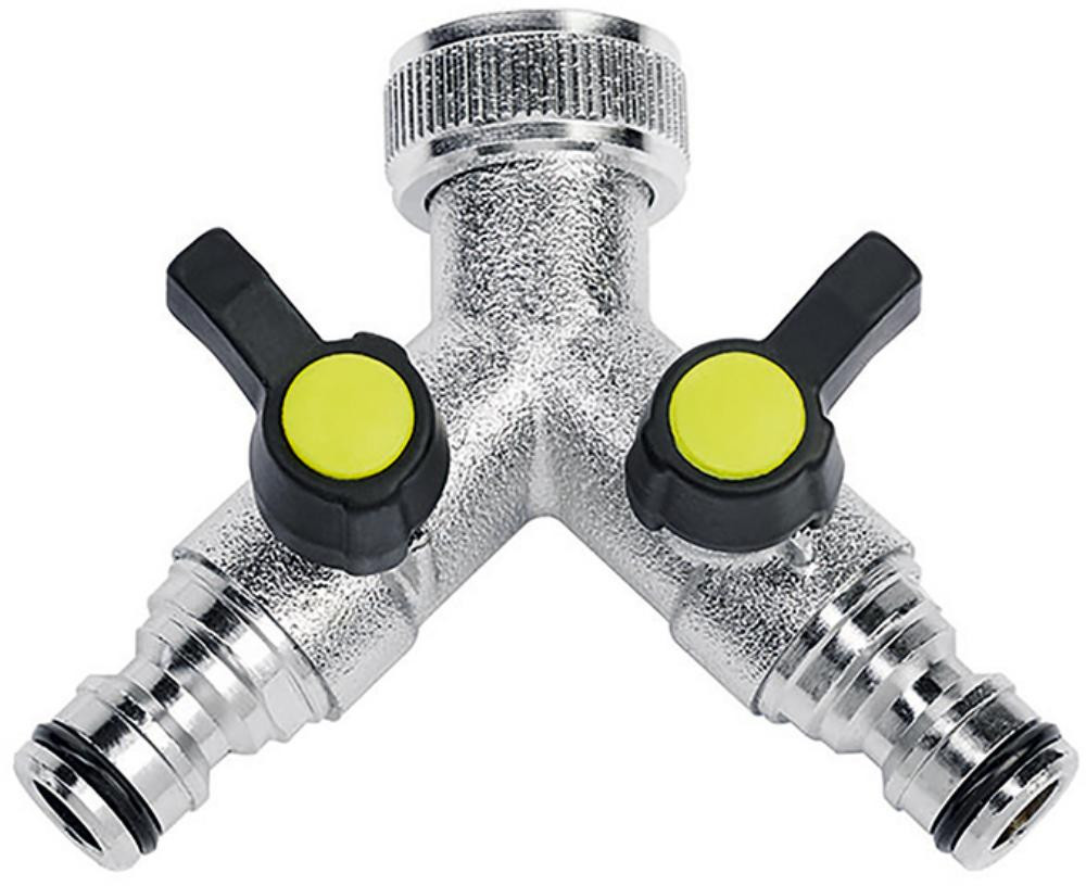 • Zwei Wasseranschlüssen in Y-Aufteilung mit Übergang auf eine 1/2“ oder 3/4" Schlauchverbindung (Standardanschluss für Schnellkupplung)