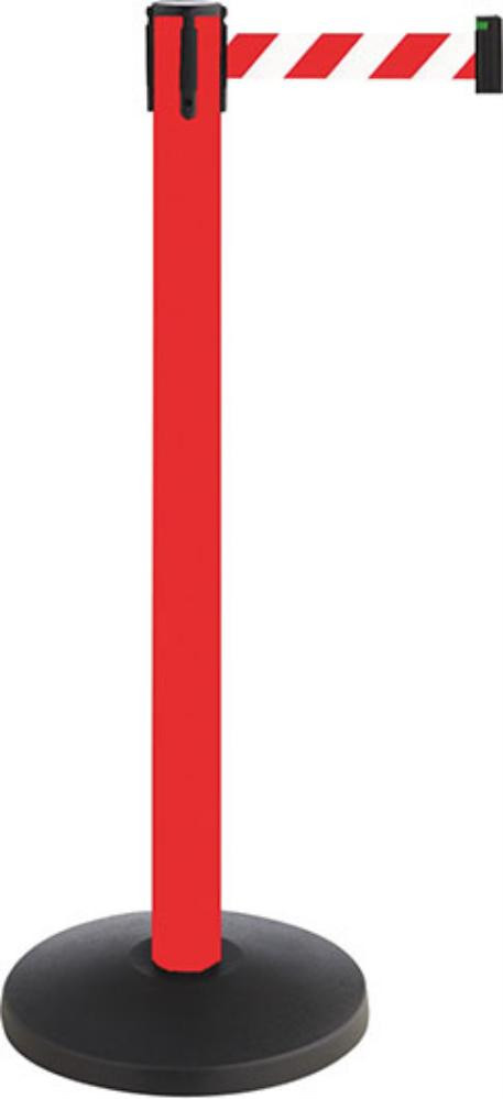 Absperrpfosten Metall, rot, Gurtlänge: 4m Gurt: rot-weiss, diagonal gestreift
