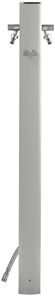 • Verfügt über einen 1/2" AG Wasseranschluss in Bodennähe und zwei Entnahmestellen 3/4" in passendem Design mit verchromten Hahnstücken und eine Edelstahl-Schlauchhalterung