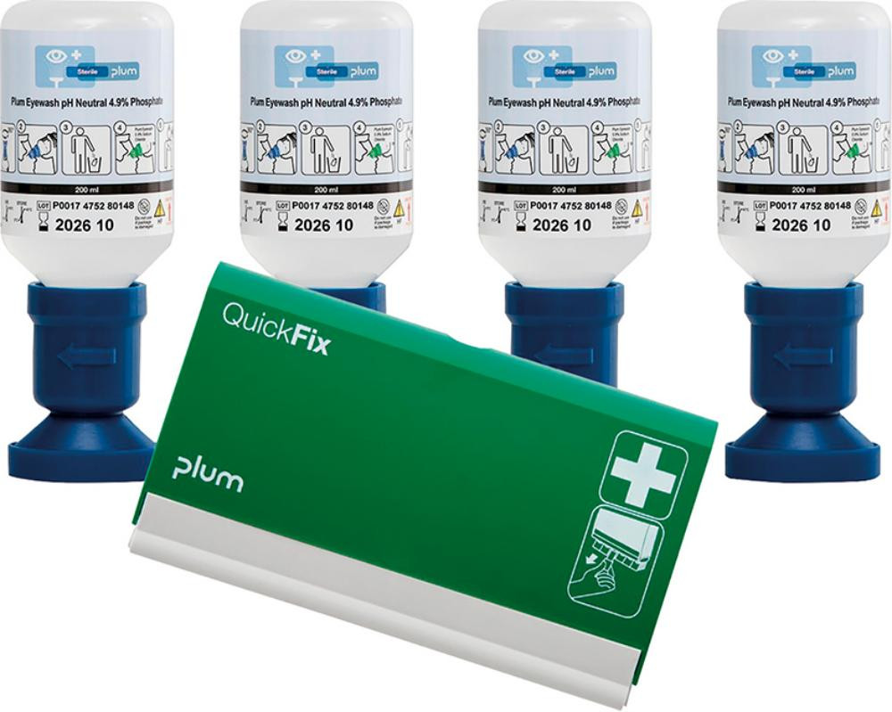 Inhalt: 4 x Augendusche 4752 Plum pH Neutral 200 ml, 1 x Pflasterspender