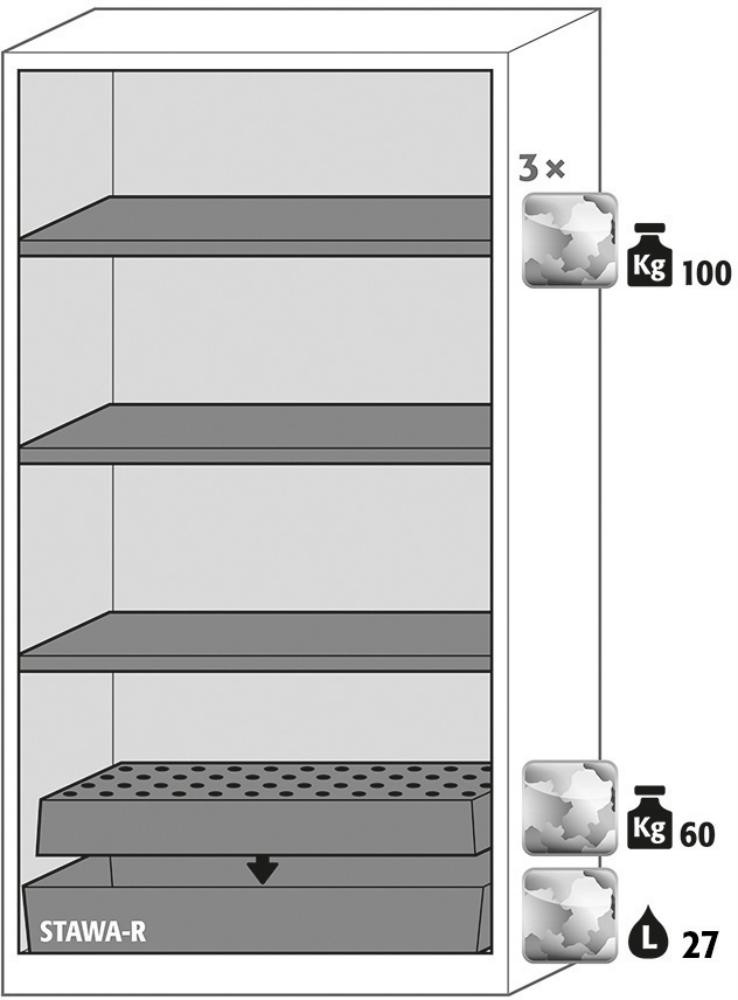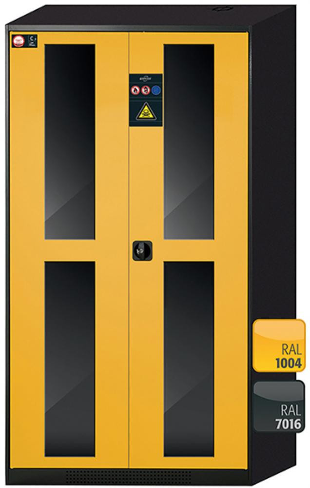 Hinweis: Für die vorschriftsmäßige Lagerung nicht entzündbarer Chemikalien und Giftstoffe in Arbeitsräumen (gemäß TRGS 510, DGUV-I 213-850 und Gefahrstoffverordnung).