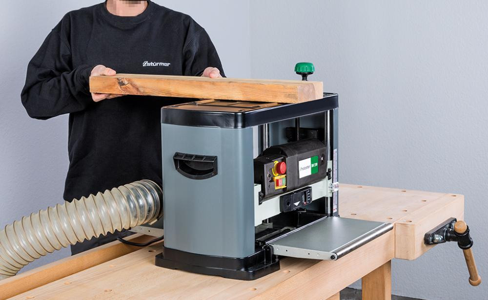 Kleine und kompakte Dickenhobelmaschine für die Bearbeitung von Massivholz.