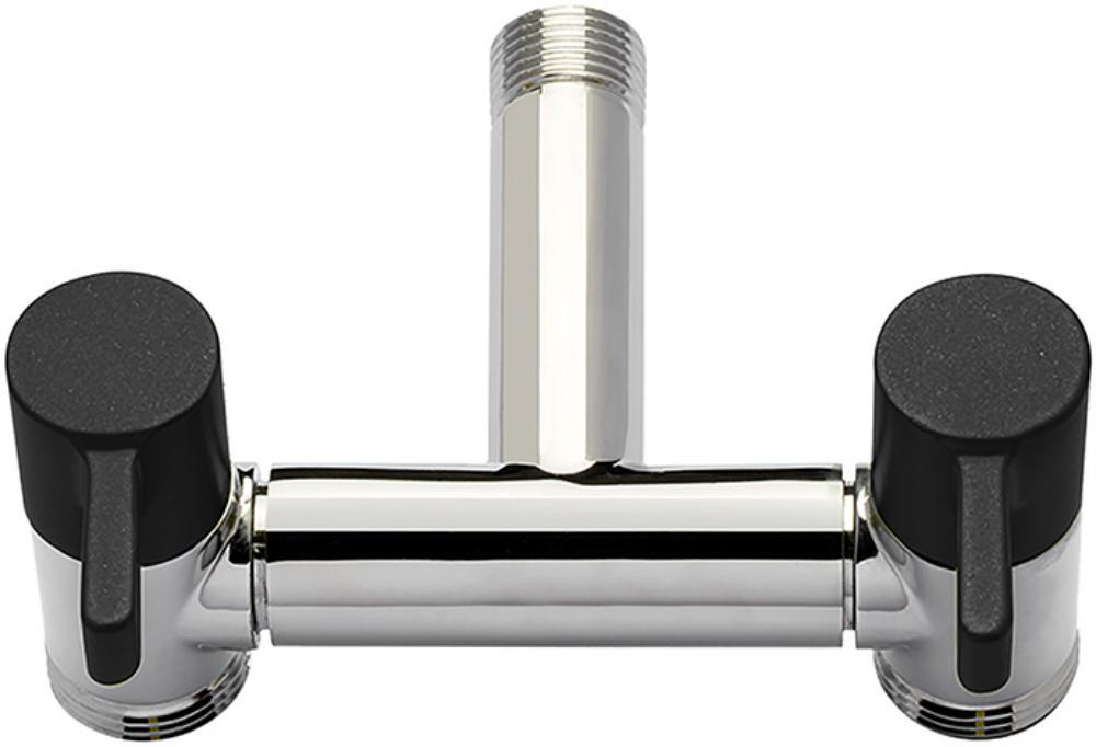 • Verchromter Doppel-Zapfhahn mit 1/2“ AG zum Wasseranschluss und zwei Ausläufen mit 3/4“ AG mit langlebiger und leichtgängiger Keramik-Kartusche sowie einem lackiertem Griff in ergonomischem Design für eine einfache Handhabung