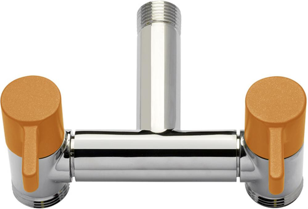 • Verchromter Doppel-Zapfhahn mit 1/2“ AG zum Wasseranschluss und zwei Ausläufen mit 3/4“ AG mit langlebiger und leichtgängiger Keramik-Kartusche sowie einem lackiertem Griff in ergonomischem Design für eine einfache Handhabung
