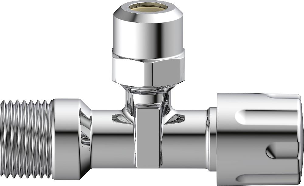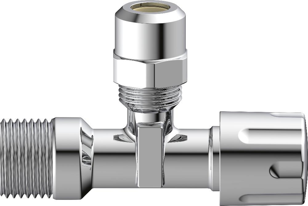 • Mit Schubrosette, Quetschverschraubung mit Längenausgleich, Abgang 3/8", für CU-Rohr 10 mm Ø