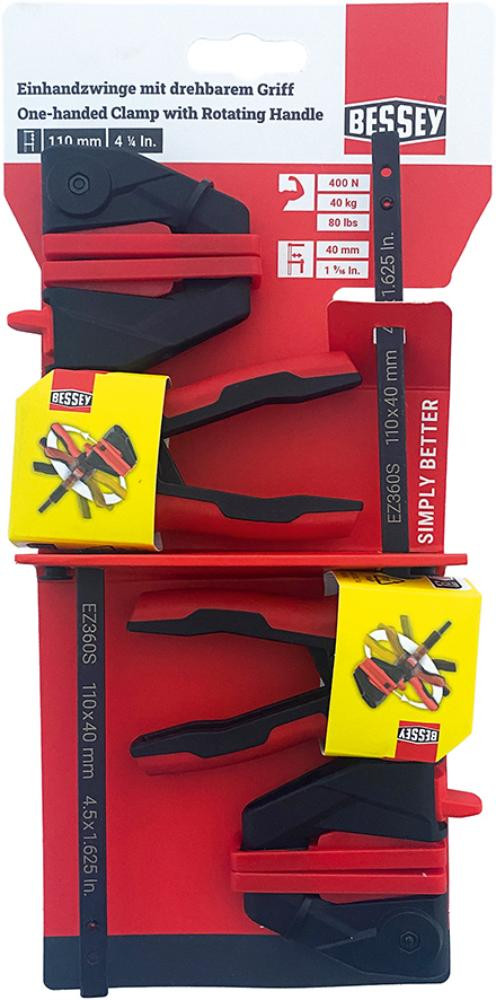 Einhandzwinge EZ360S 110x40mm 2 Stück drehbarer Griff BESSEY 219538