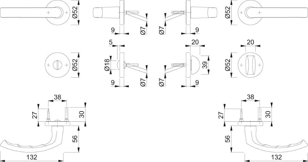 • Lagerung: Türgriffe lose, Rückholfedern rechts/links verwendbar, wartungsfreie Gleitlager