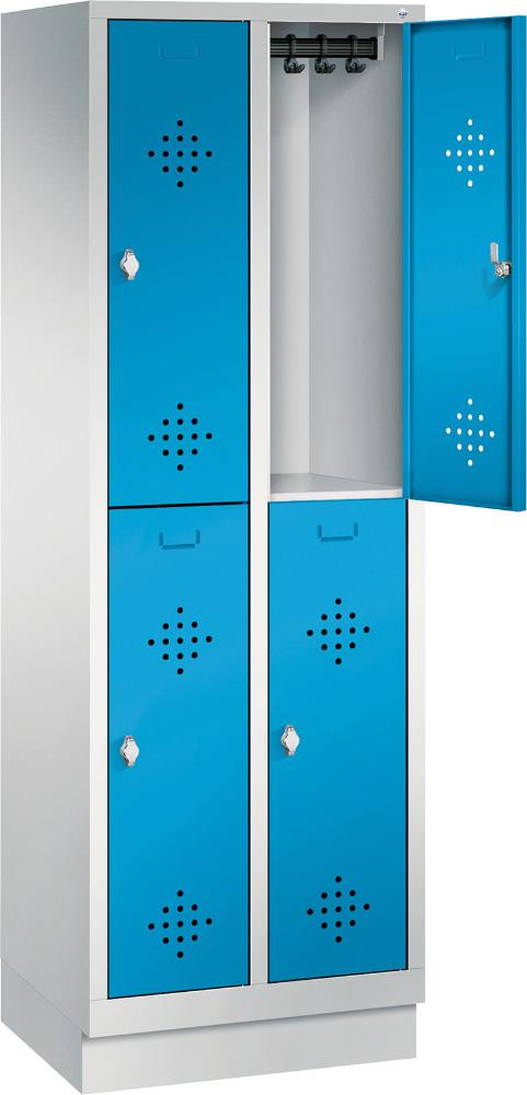 Garderobenschrank Classic B610xT500xH1850 mm RAL 7035/5012,2x2Abteile mit 100 mm hohem Sockel