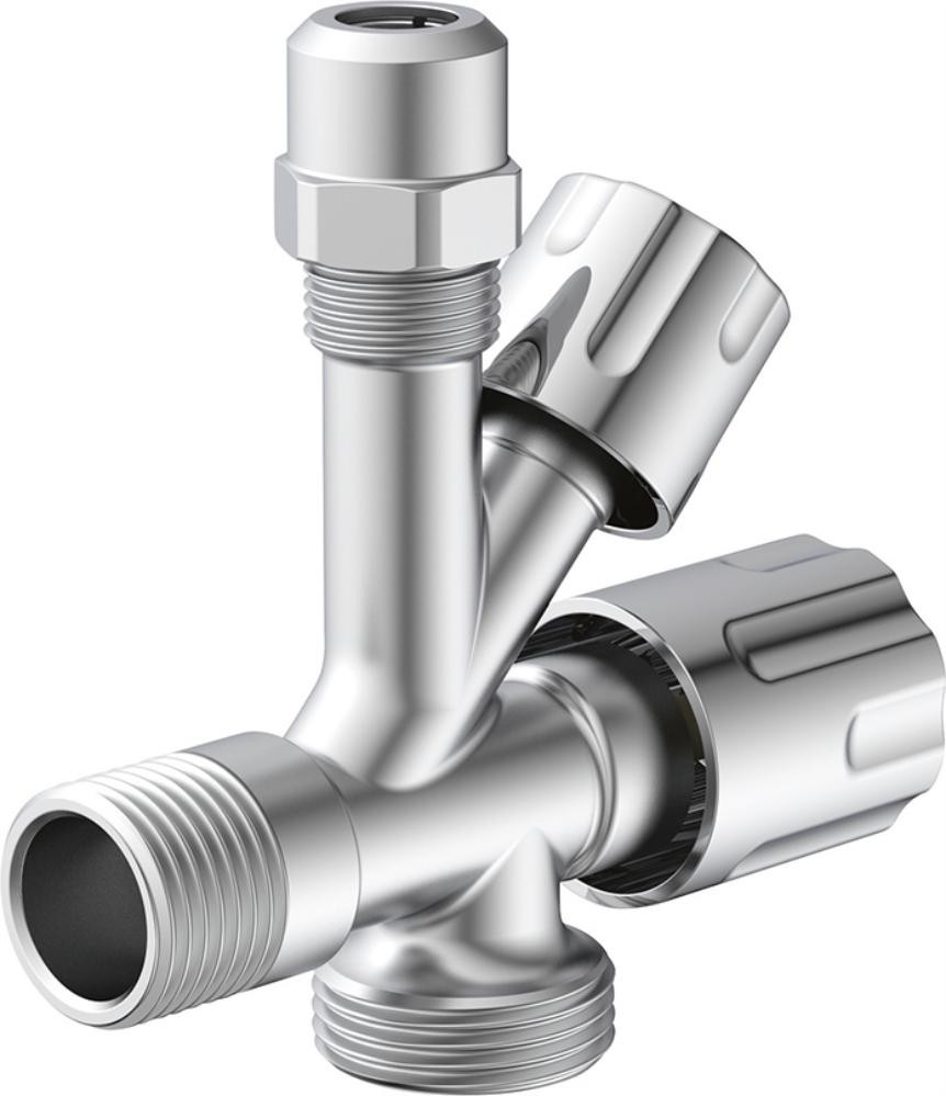 Geräte-Eckventil, 1/2"AG , x 3/4"AG x 3/8"AG x 10 mmQ