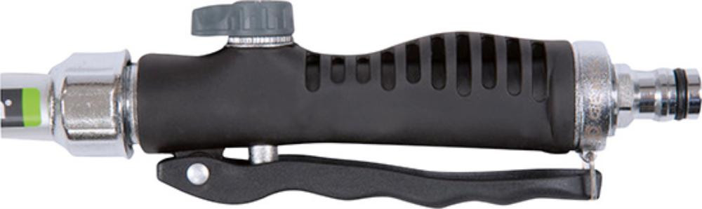 • Ermöglicht Impulsgießen oder mit betätigter Arretierung eine durchgehende sanfte Bewässerung