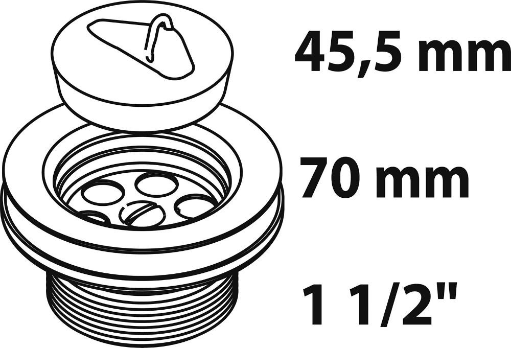 KS Ablaufventil, 1 , 1 1/2"AG x 70 mm, Ventilkelch mit Ventilstopfen 45,5 mm