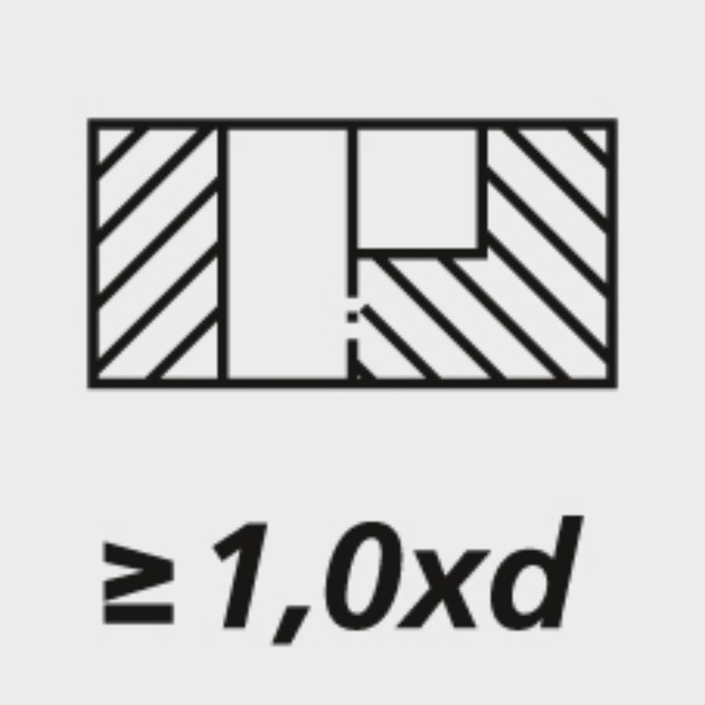 • Die FLOWSTEP® Spitze (ab M5) ermöglicht sicheres Zentrieren ohne Ankörnen, auch auf runden Oberflächen wie Rohren. Sie sorgt für einen leichten und ruhigen Bohrvorgang ohne Verkanten im Material und ermöglicht schnelles und kräfteschonendes Bohren mit einer Zeitersparnis von bis zu 75 %. Zudem bietet sie eine deutlich längere Standzeit, sodass bis zu sechsmal mehr Bohrungen möglich sind. Die Spitze ist optimal geeignet für den Einsatz in handgeführten Elektro-Werkzeugen.