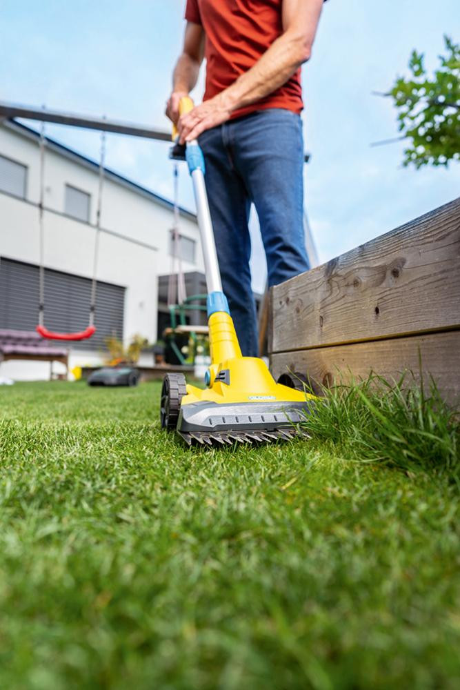 • Perfekter Konturenschnitt bis zum Rand. Ideal auch bei Hochbeeten und Spielinstallationen auf der Rasenfläche.