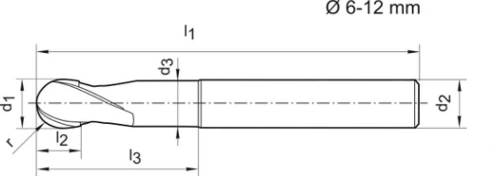 Kugelfräser kurz WN VHM Typ HSC Signum 30Grad Schaft HA 6mm GÜHRING K23622019