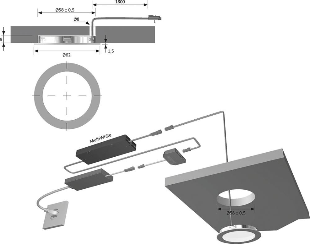 LitePanel 58 Edel. Op. nw 12VDC 3,2W LTG 1,8m M1 K23631965