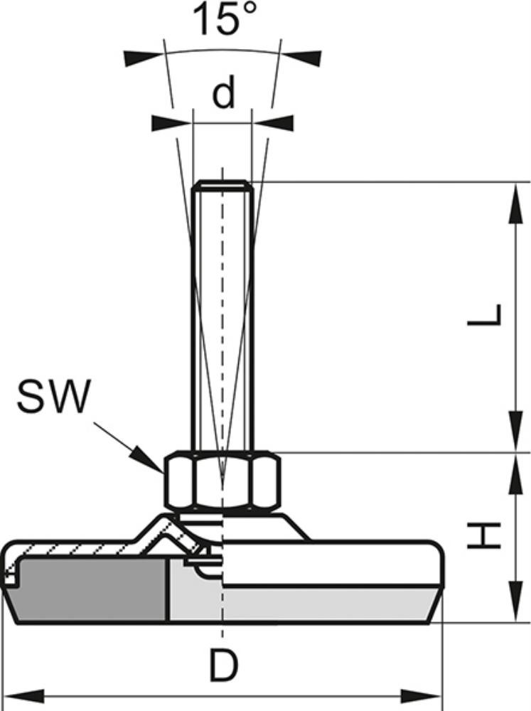 Maschinenfuß Typ GS, 2x Mutter u. Scheibe, D50xH34mm, M10x100, NBR70 V2A K23620465