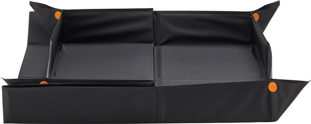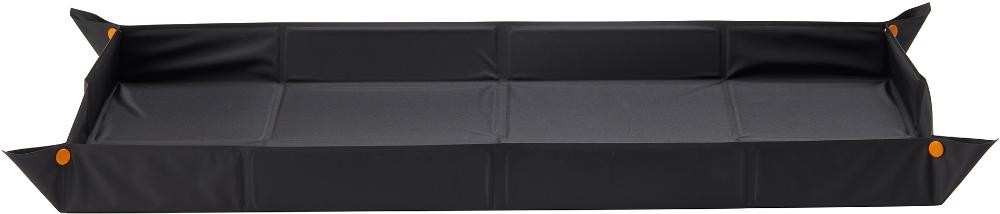 • Stabile, aufstellbare Ränder mit Druckknöpfen halten Erde und Schmutz im Mattenbereich