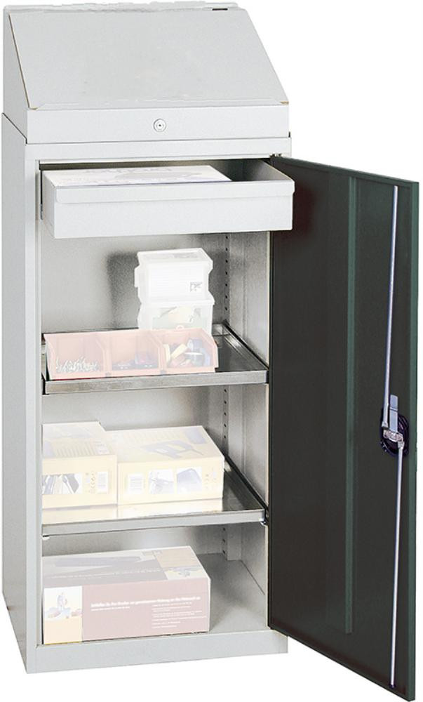 Werkzeug- und Materialschrank Serie 2000, 1 Schreibpultaufsatz, 1 Schublade, 2 Fachböden