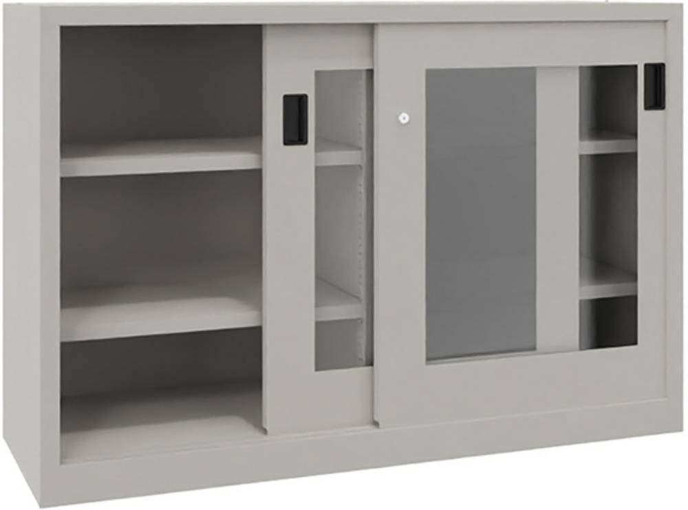 Schwerlastschiebetürenschrank, mit Sichtfenstertüren und Mitteltrennwand, Böden gepulvert