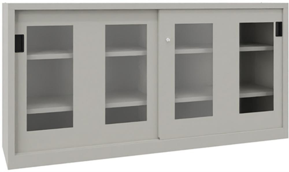 Schwerlastschiebetürenschrank, mit Sichtfenstertüren und Mitteltrennwand, Böden gepulvert