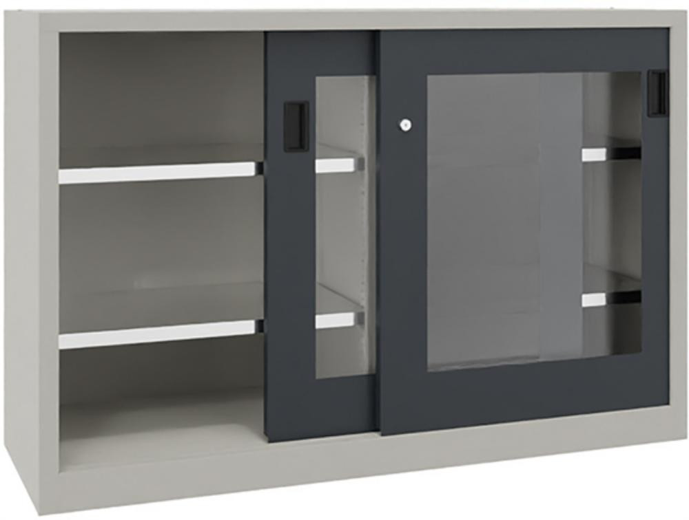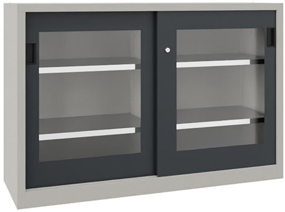 Schwerlastschiebetürenschrank, mit Sichtfenstertüren und Mitteltrennwand, Böden verzinkt