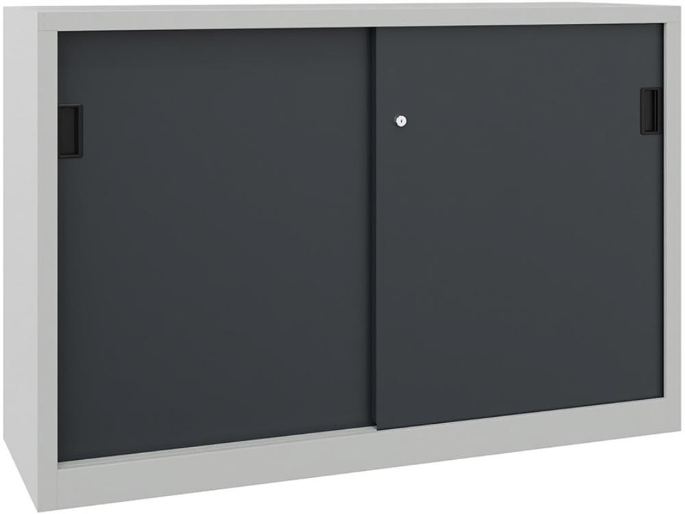 Schwerlastschrank H1000xB1500xT400 mm 4 Böden verz. Mittelwand RAL 7035 Schiebetür K23553488