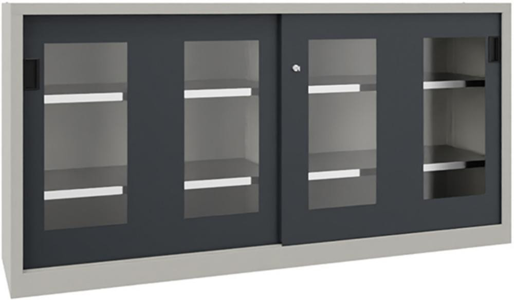 Schwerlastschiebetürenschrank, mit Sichtfenstertüren und Mitteltrennwand, Böden verzinkt