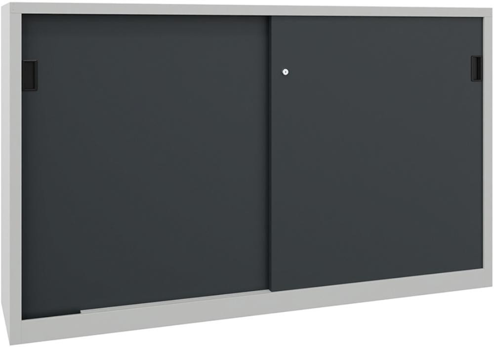Schwerlastschrank H1000xB1500xT400 mm 4 Böden verz. Mittelwand RAL 7035 Schiebetür K23553488