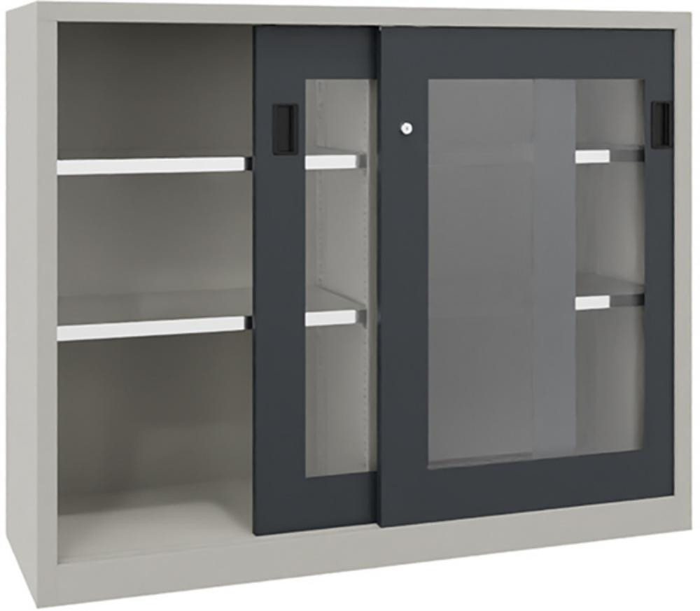 Schwerlastschiebetürenschrank, mit Sichtfenstertüren und Mitteltrennwand, Böden verzinkt