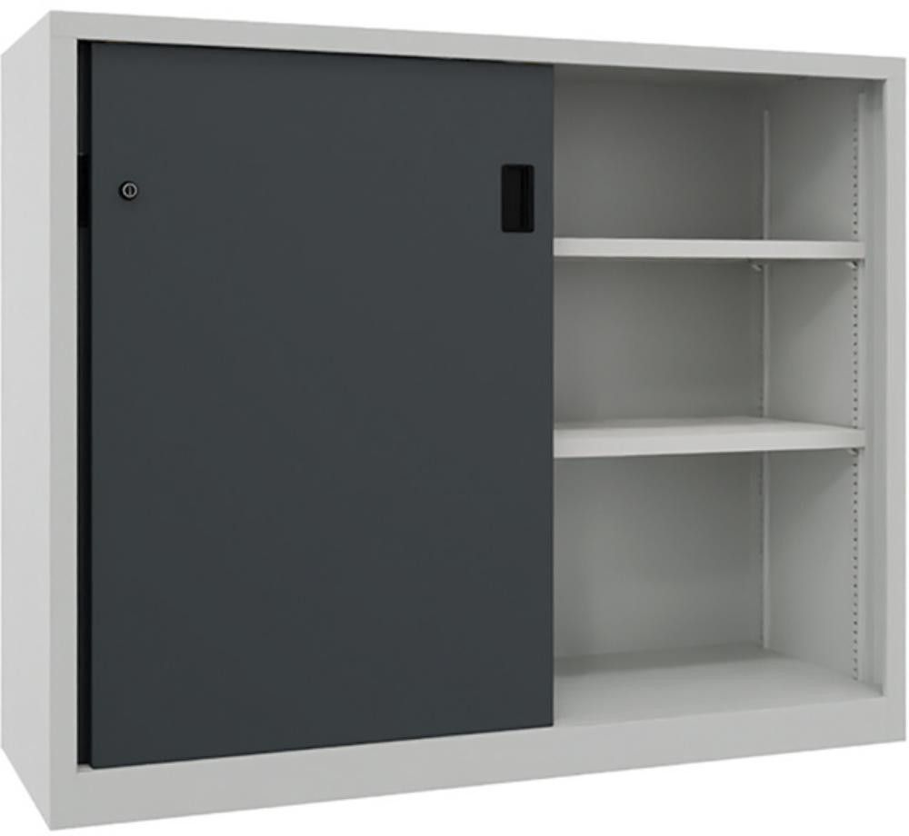 Schwerlastschrank H1000xB1500xT400 mm 4 Böden verz. Mittelwand RAL 7035 Schiebetür K23553488