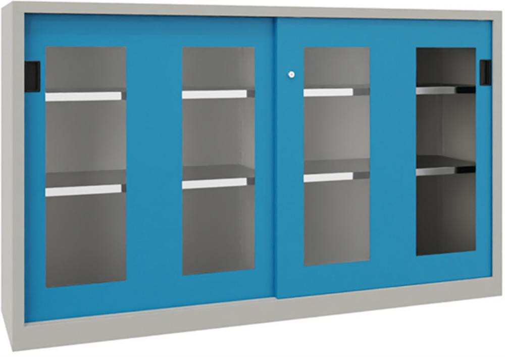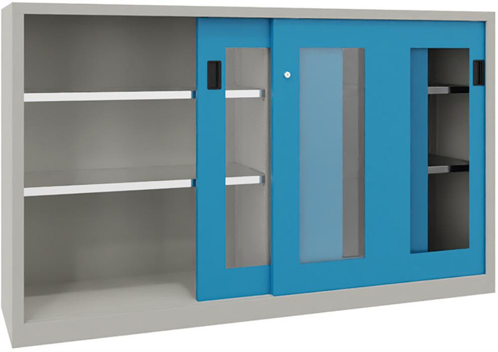 Schwerlastschiebetürenschrank, mit Sichtfenstertüren und Mitteltrennwand, Böden verzinkt