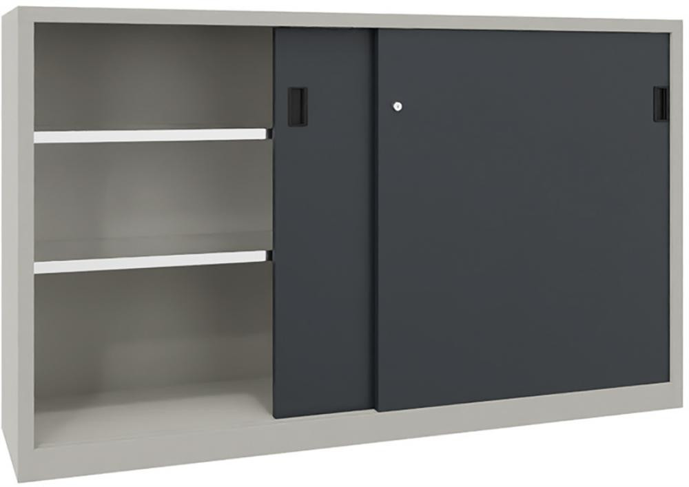 Schwerlastschrank H1000xB1500xT400 mm 4 Böden verz. Mittelwand RAL 7035 Schiebetür K23553488