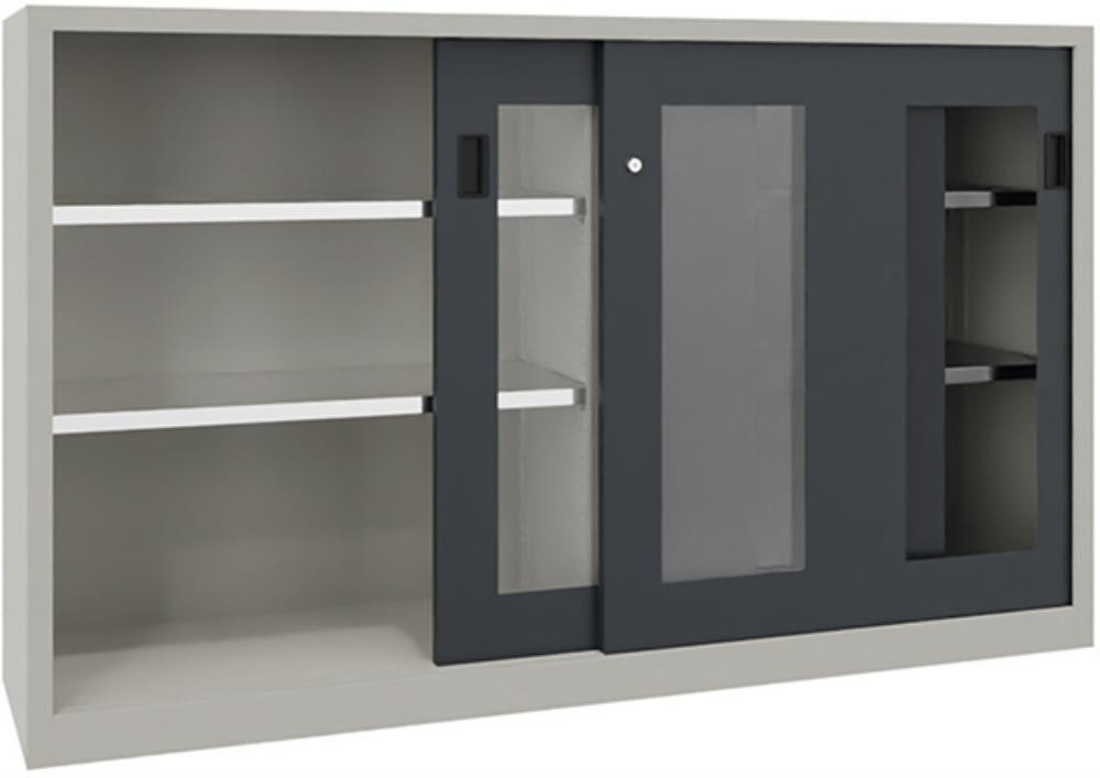 Schwerlastschiebetürenschrank, mit Sichtfenstertüren und Mitteltrennwand, Böden verzinkt