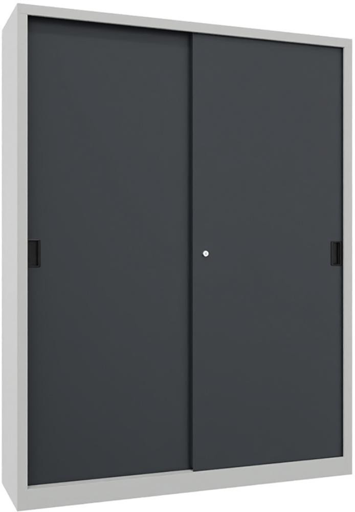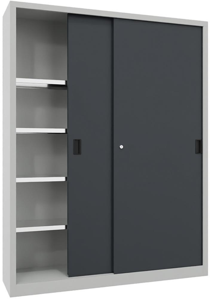 Schwerlastschrank H1000xB1500xT400 mm 4 Böden verz. Mittelwand RAL 7035 Schiebetür K23553488