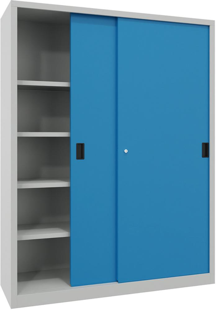 Schwerlastschiebetürenschrank, mit Vollblechtüren und Mitteltrennwand, Böden gepulvert