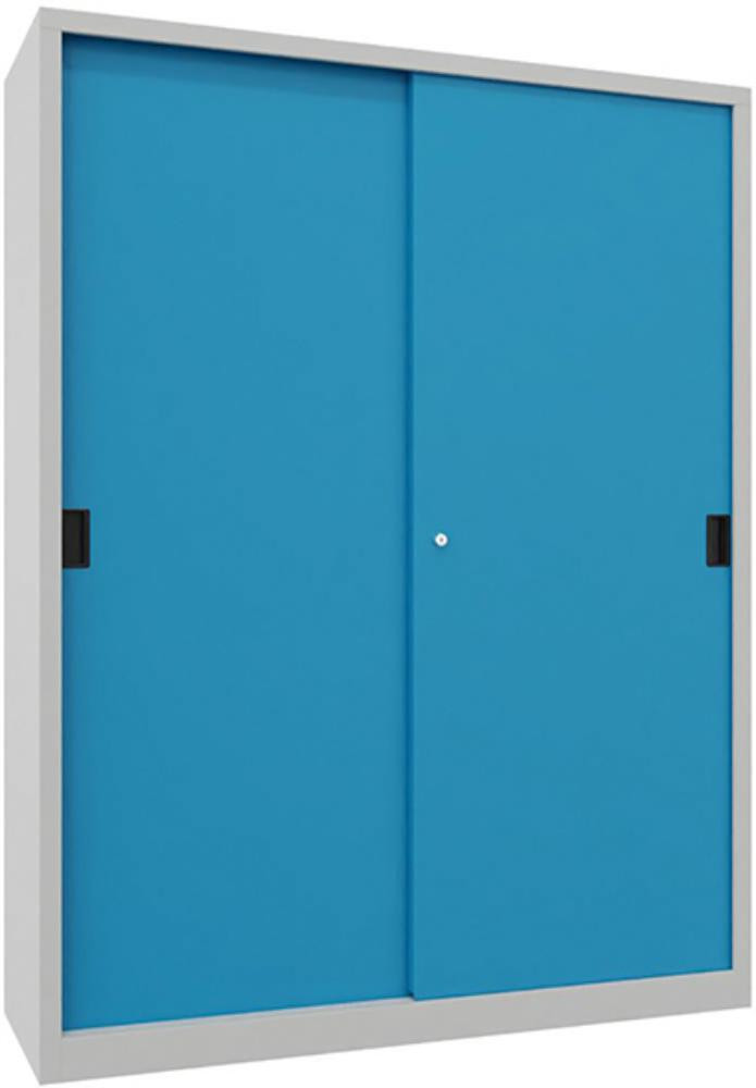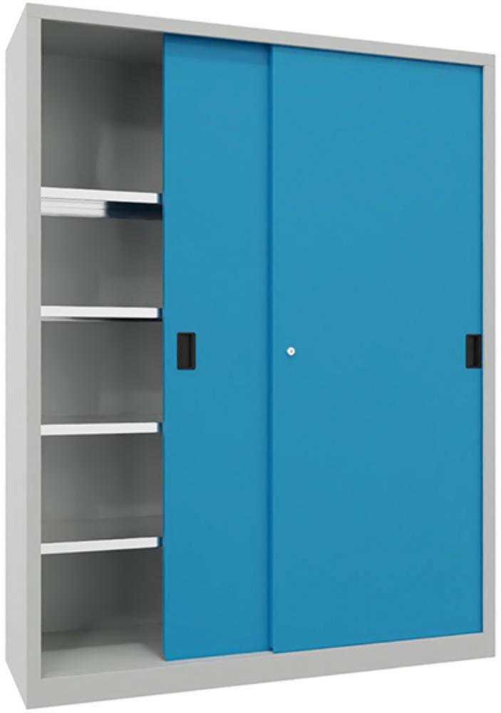 Schwerlastschrank H1000xB1500xT400 mm 4 Böden verz. Mittelwand RAL 7035 Schiebetür K23553488