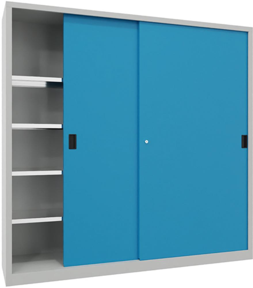 Schwerlastschrank H1000xB1500xT400 mm 4 Böden verz. Mittelwand RAL 7035 Schiebetür K23553488