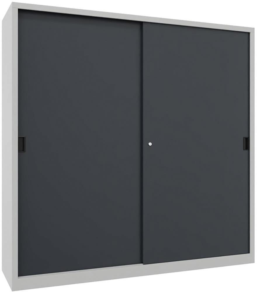 Schwerlastschrank H1000xB1500xT400 mm 4 Böden verz. Mittelwand RAL 7035 Schiebetür K23553488