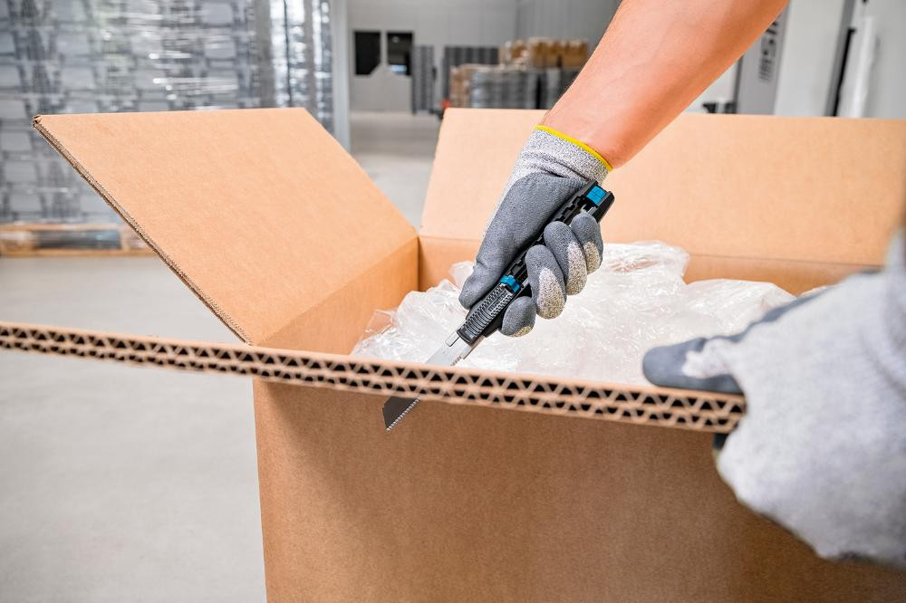• Bei Klingenrückzug verlässt die Klinge das Schneidmaterial und wird automatisch in den Griff zurückgezogen, wenn der Schieber nicht betätigt wird