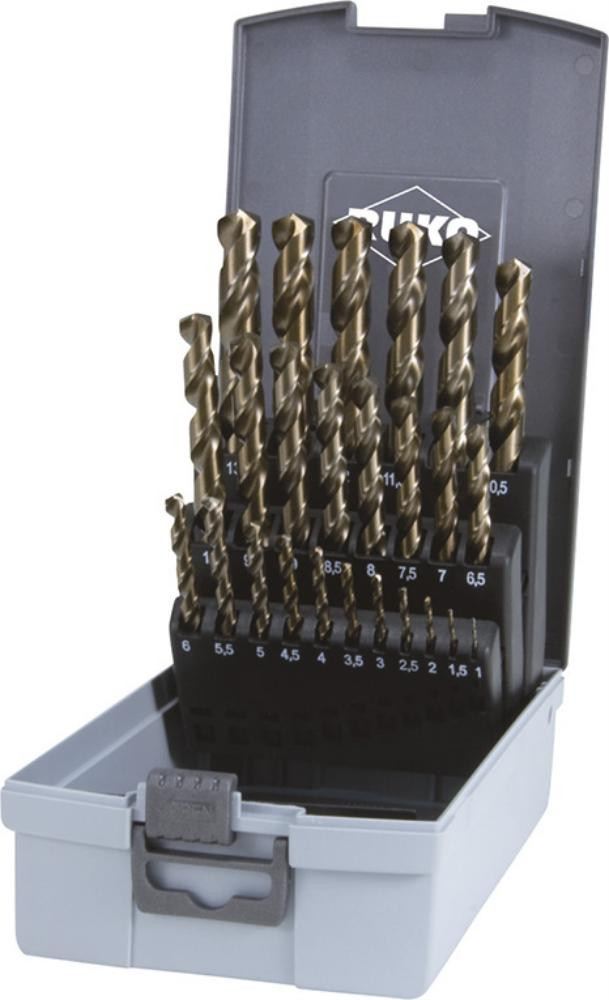 Spiralbohrer-Satz DIN338 HSS-Co5 D.1-13mm 0,5mm stg. Ku-Kassette 25tlg. RUKO