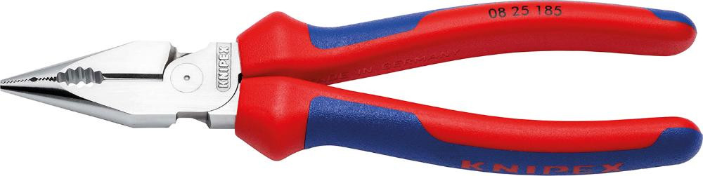 Spitz-Kombinationszange verchormt mit Mehrkomponenten-Griffen 185mm KNIPEX