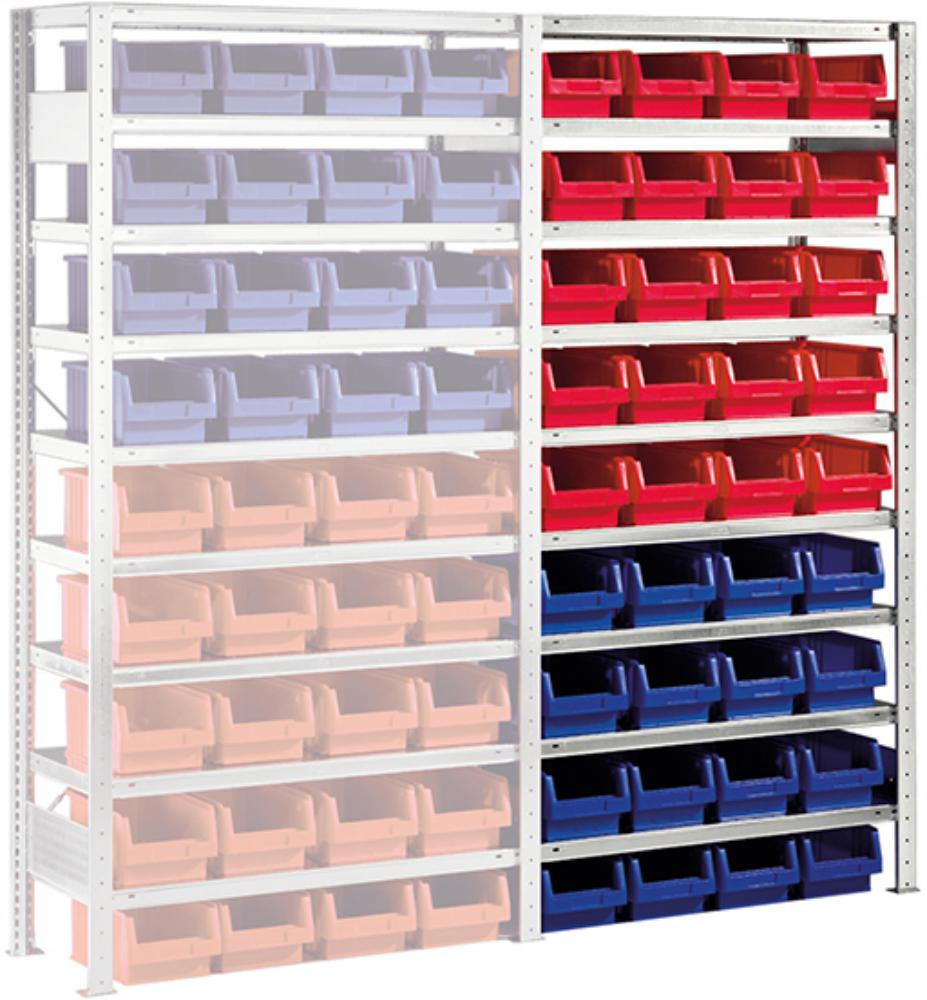 Steckregal Meta-CLIP B1000xT400xH2000 mm Anbaufeld 9 Böden vzk Fachlast 100kg 36 Kästen