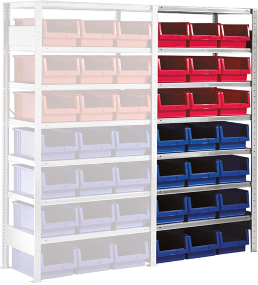 Steckregal Meta-CLIP B1000xT300xH2000 mm Anbaufeld 10 Böden vzk Fachlast 100kg 60 Kästen K15719107