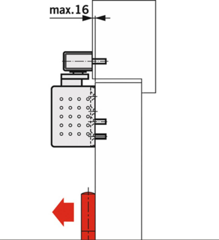 • Öffnungswinkel Sturzmontage (Bandgegenseite) max.: 145°, Öffnungswinkel Türblattmontage (Bandseite) max.: 180°
