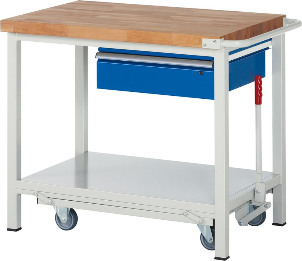 Mobile Werkbank, absenkbar, 1 Schublade, 1 Stahlblech-Ablageboden