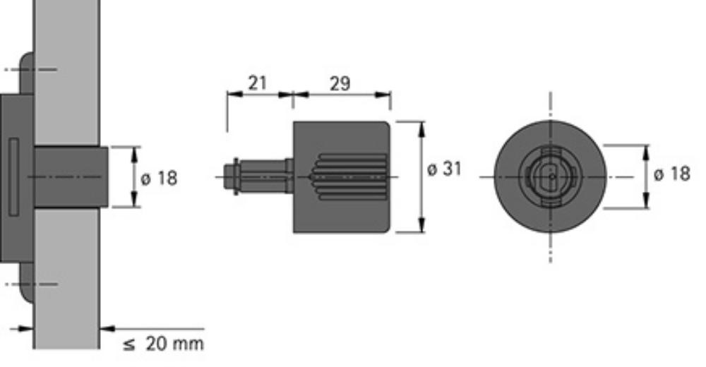 Zylinder-Drehgriff,rechts matt vernickelt Typ 451N